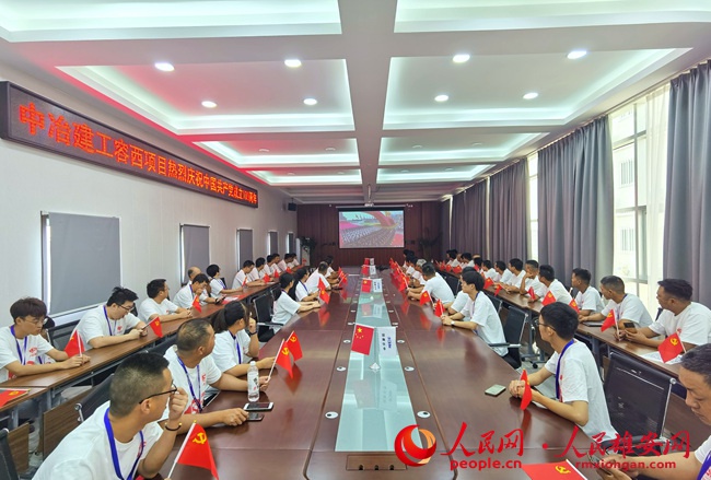 容西安置房B2標段項目部集體組織收聽收看慶祝中國共產黨成立100周年大會直播。凌蘇攝