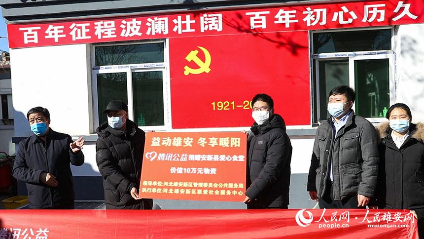 圖為雄安新區公共服務局聯合騰訊公益向安新縣愛心食堂捐贈物資。張慕天攝