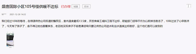 如果你和身邊人也遭遇了暖氣不暖的問題,或有什么急難愁盼問題,可以通過人民網“領導留言板”找領導說說。