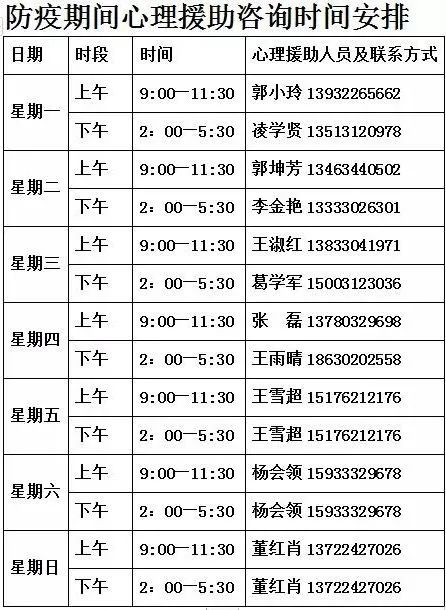 9.安新縣開通“我把我說給你聽”學生心理援助熱線,凡是因疫情而引發的心理問題,一律可撥打熱線電話,由專業心理教師和專家免費提供心理指導和服務。