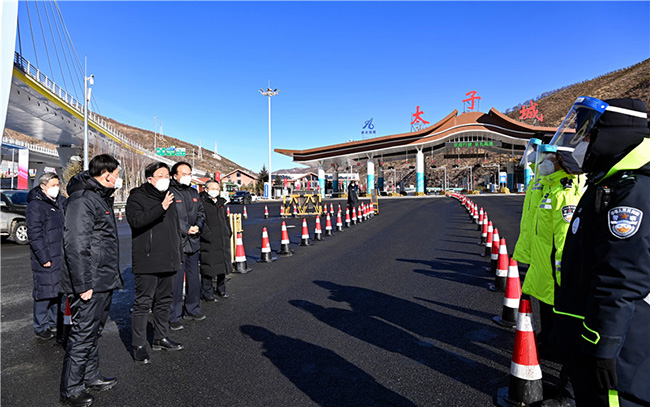 春節相逢冬奧,給崇禮這座塞外小城增添了別樣的色彩。王東峰深入到崇禮區太子城重點路段、關鍵部位,看望慰問一線工作人員,現場檢查指導疫情防控、交通安保、消防安全、電力保障、水源供給、酒店準備等重點工作。在京禮高速太子城檢查站,王東峰看望慰問執勤民警,向大家表示新春的祝福,叮囑大家嚴格落實交通管理政策,立足崗位、嚴防嚴守,確保交通高效、安全、順暢。在和平驛站交通救援點,王東峰聽取交通應急處置工作匯報,強調要完善工作方案和應急預案,超前準備、未雨綢繆,科學應對突發事件,確保安全萬無一失。在冬奧核心區地表水廠,王東峰看望慰問值班值守的武警官兵,代表省委、省政府,向大家表示節日問候和衷心感謝。在聽取水廠運營情況匯報時,王東峰強調,要把保水質安全、保水量供應作為重中之重,通過信息化手段,強化24小時巡查,保障飲用水安全穩定供應。在冬奧村消防救援站,王東峰實地察看救援裝備,看望慰問一線消防救援人員,強調要立足于防,全面排查消防安全隱患,建立健全責任制度,實行網格化管理,推動消防檢查常態化、制度化。一旦發生消防事故,要迅速行動、科學施救,防止發生次生災害。在冬奧運動員行車專用通道,王東峰詳細了解車輛通行情況,叮囑執勤干警要規范文明指揮,提升通行效率,同時要增強防護意識,保障自身安全。在太子城區域國家電網公司奧雪變電站,王東峰聽取冬奧供電服務保障和智慧指揮平臺建設情況匯報,強調要保障電力正常運行和穩定供應,為冬奧會順利舉辦提供有力能源支撐。同時要積極調整能源結構,大力推廣應用風電、光伏、氫能等新能源,為碳達峰、碳中和作出積極貢獻。在轉枝蓮檢查站,王東峰詳細了解檢查站運行情況,與工作人員互動交流,希望大家發揚不怕苦、不怕累的優良作風,健全交通、防疫、安!叭灰惑w”協調機制,構筑堅固的安全屏障,并叮囑有關負責同志關心關愛冬奧工作者的生活,做好飲食、保暖等服務工作。在國賓山莊,王東峰認真檢查酒店服務工作,強調要緊盯細節、精益求精,全力做好涉賽人員的服務保障,創造溫馨舒適環境。