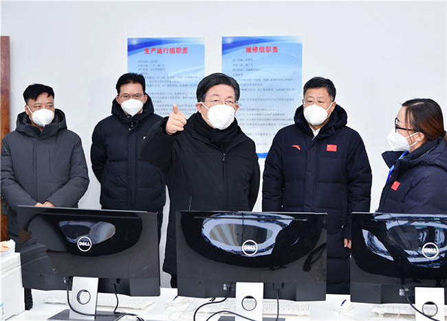 2月1日至2日,在春節假期,河北省省委書記、省人大常委會主任王東峰到張家口市崇禮區調研檢查并指揮調度冬奧會籌辦備賽工作。這是王東峰在冬奧核心區地表水廠聽取運營情況匯報。 河北日報記者趙海江攝