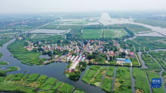 這是白洋淀內的村莊(2021年8月14日攝,無人機照片)。新華社記者 牟宇 攝