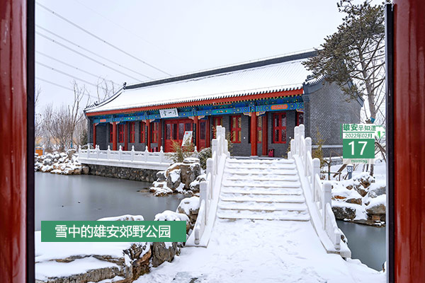 今天是2022年2月17日,星期四,天氣多云,-7℃~2℃。在封面和大家見面的是雪中的雄安郊野公園。