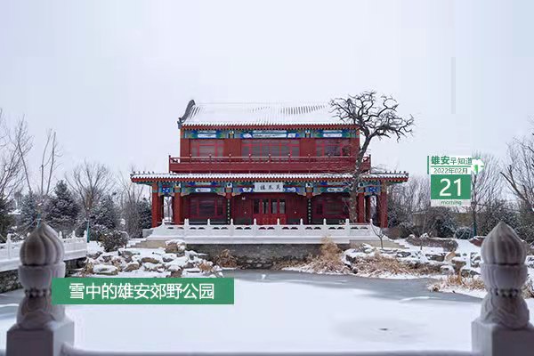 今天是2022年2月21日,星期一,天氣多云轉晴,-8℃~5℃。在封面和大家見面的是雪中的雄安郊野公園。