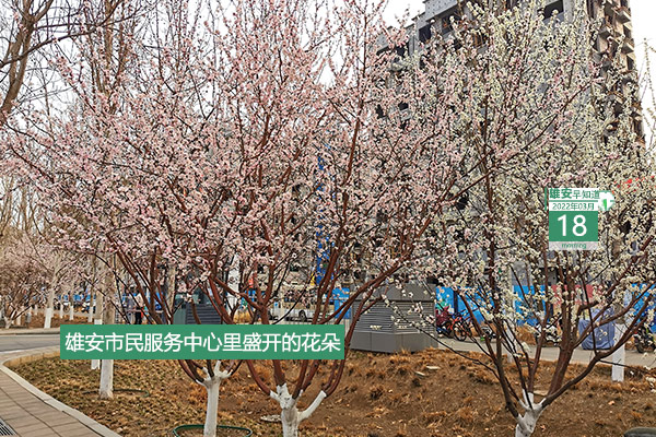 今天是2022年3月18日,星期五,小雪轉陰,-3℃~5℃。在封面和大家見面的是雄安市民服務中心里盛開的花朵。