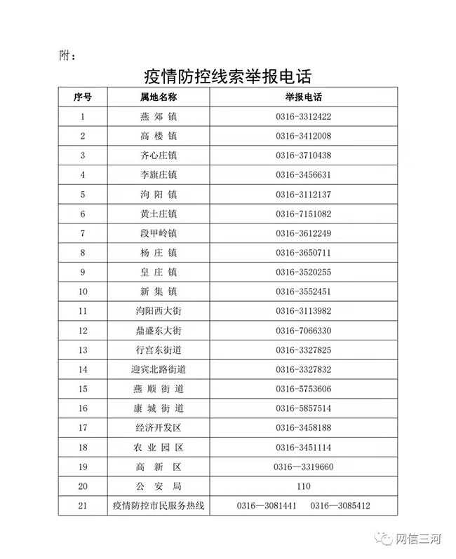 三河市新型冠狀病毒肺炎疫情防控工作領導小組辦公室最新發布通告