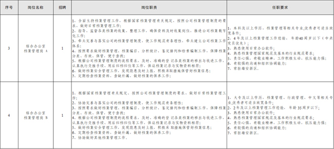 綜合辦公室檔案管理崗A 1名