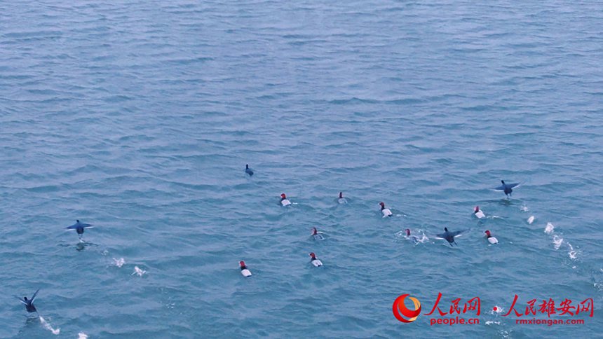 人民網雄安3月24日電 “春江水暖鴨先知!币坏酱禾,大批候鳥陸續抵達白洋淀,開始筑巢產卵、孵化育雛,11月份再遷徙到南方避寒越冬。日前,在白洋淀水域拍攝到遷徙歸來的國家一級保護動物青頭潛鴨,鳳頭鸊鷉和大種群的國家“三有”保護動物紅頭潛鴨、白骨頂雞,它們在淀中暢游、嬉戲、追逐、覓食,萌態十足。