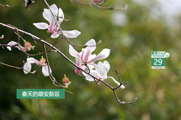 今天是2022年3月29日,星期二,天氣陰轉多云,8℃~16℃,在封面和大家見面的是春天的雄安新區。