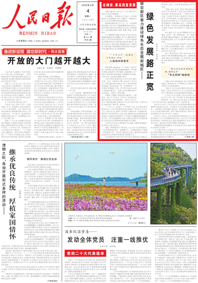 建設雄安新區是千年大計。從一開始謀劃新區建設,習近平總書記就強調要堅持生態優先、綠色發展,劃定開發邊界和生態紅線,實現兩線合一,著力建設綠色、森林、智慧、水城一體的新區。