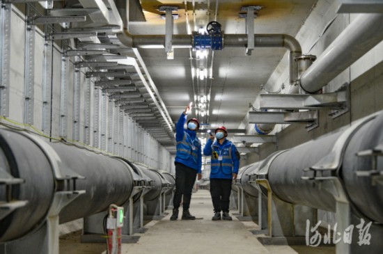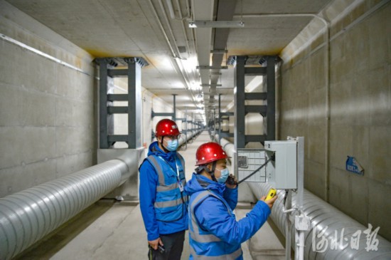 近日,雄安新區容東片區綜合管廊運維巡檢組工作人員正在巡檢。容東綜合管廊標準斷面為四艙——電力艙、綜合艙、能源艙、燃氣艙。目前,單艙投運已達100公里。 河北日報記者趙海江攝