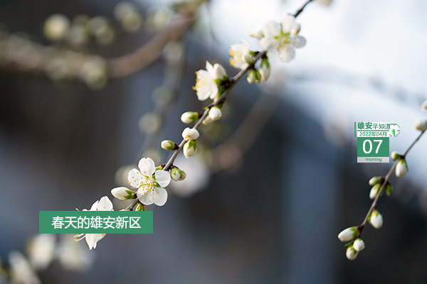 今天是2022年4月7日,星期四,天氣多云轉晴,8℃~26℃。在封面和大家見面的是春天的雄安新區。