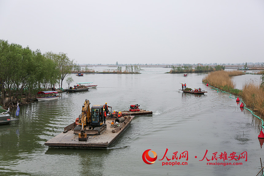 建設雄安新區,一定要把白洋淀修復好、保護好。雄安新區設立以來,始終堅持補水、清淤、治污、防洪、排澇一體推進,持續推動白洋淀生態環境治理工作取得良好效果。目前,白洋淀水質從2017年劣Ⅴ類全面提升至Ⅲ類,步入全國良好湖泊行列。圖為白洋淀河道清淤工程。陳世豪攝