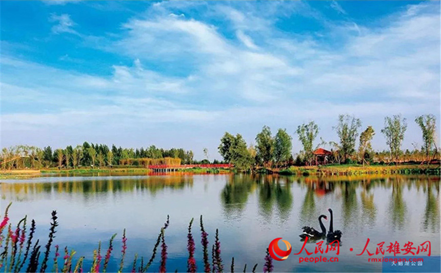如今的雄安新區高顏值的公園越來越多,成為新區百姓休閑游玩的好去處。圖為雄縣天鵝湖公園。雄縣宣傳部供圖