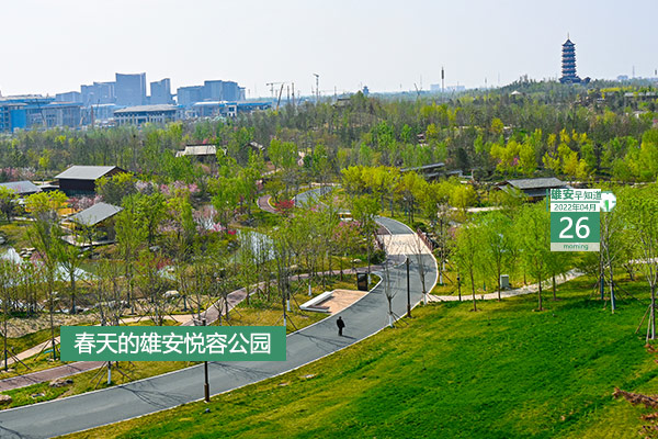 今天是2022年4月26日,星期二,晴轉多云,11℃~24℃。在封面和大家見面的是春天的雄安悅容公園。