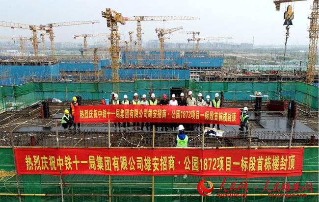 雄安招商·公園1872項目一標段首棟封頂建筑。中鐵十一局供圖