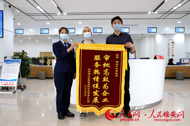 人民網雄安5月8日電 (劉師豪)“在你的幫助下,我短短幾天就成功提交了所有材料,為你的優質服務點贊!”5月7日上午,北京滿天紅科貿有限公司雄縣分公司的孔祥金專程來到雄安新區雄縣政務服務中心,為綜合受理組工作人員趙雪送來了一面錦旗和感謝信,表達自己誠摯的謝意。