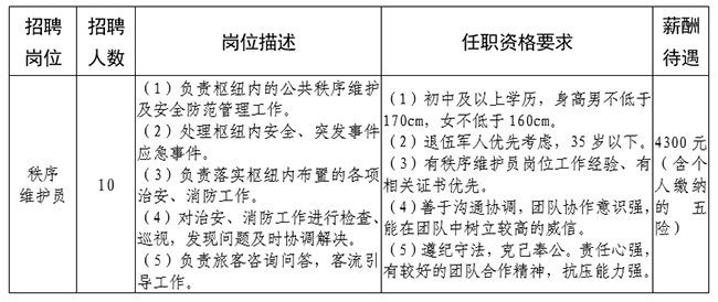 共招聘秩序維護員10名,崗位要求詳見下表或招聘報名頁面。
