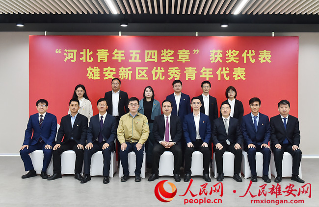 張國華與“河北青年五四獎章”獲獎代表和新區優秀青年代表合影。劉向陽攝