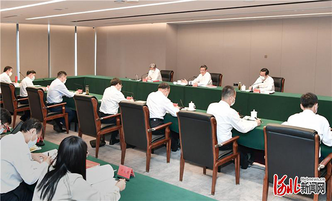 5月18日下午,省委書記倪岳峰在雄安新區主持召開座談會,與中央駐冀主要媒體負責人深入交流。 河北日報記者趙海江攝