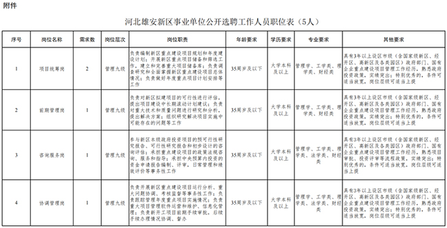 附件:河北雄安新區事業單位公開選聘工作人員職位表