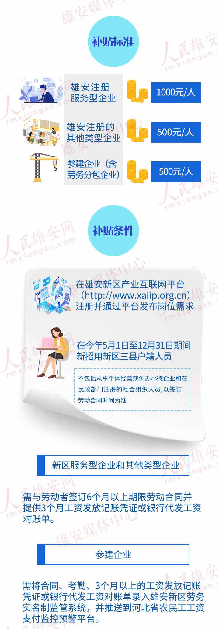 人民網雄安5月28日電 日前,雄安新區發布《用人單位一次性新增就業補貼實施細則》和《關于開展2022年度零工驛站認定工作》,提出對招聘員工、為群眾提供就業服務的企業進行資金補貼。那么,到底哪些企業能獲得補貼?補貼標準是什么?如何申報?人民雄安網進行了梳理,一起來看。