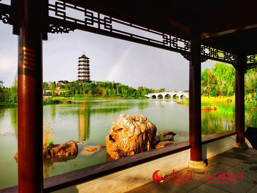 雨后,“彩虹橋”雄安橫跨天空。齊鑫攝