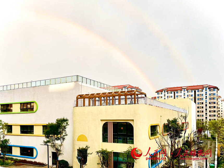 雨后“雙彩虹”懸掛在悅容幼兒園上空。陳丹陽攝