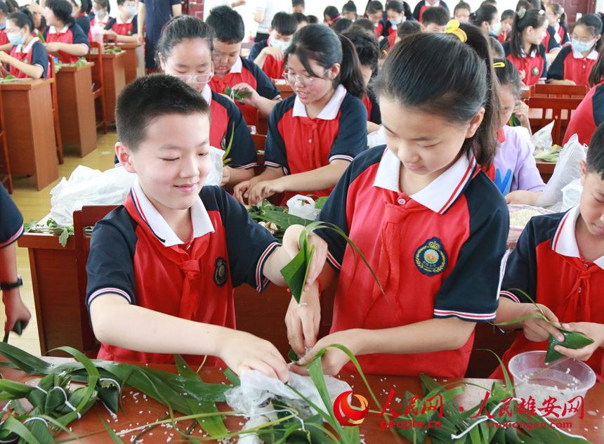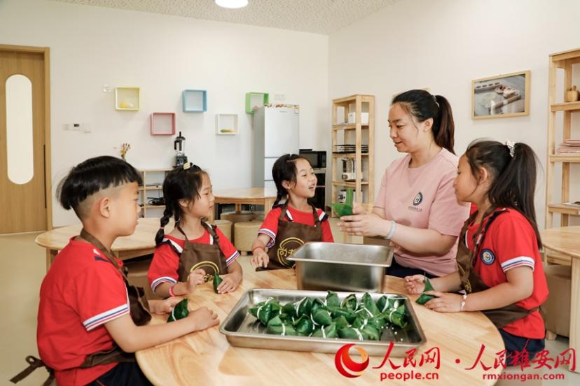 安新小學的學生正在包粽子。人民網 劉師豪攝