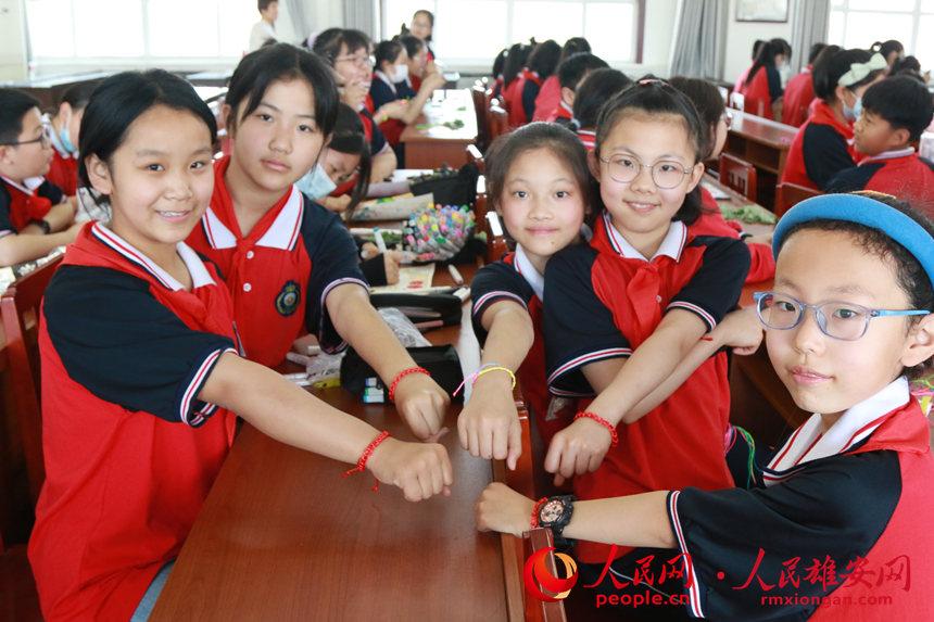 安新小學的學生展示自己制作的手繩。人民網 劉師豪攝