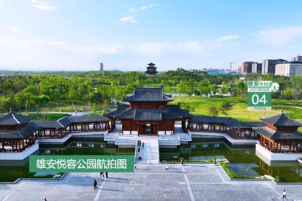 今天是2022年6月4日,星期六,天氣雷陣雨轉多云 ,20~30℃。在封面和大家見面的是雄安悅容公園航拍圖。