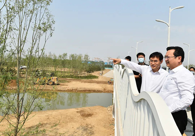 盛夏時節,啟動區建設工地如火如荼,一片繁忙景象。張國華一行先后來到啟動區中央綠谷和東部溪谷EA1橋、EB2橋等項目建設現場,調研檢查項目建設進展及水系生態補水情況。張國華強調,中央綠谷和東部溪谷是啟動區核心綠色空間,是“秀林、綠谷、淀灣”生態空間結構的重要組成部分,是啟動區優美生態環境的集中展現。要嚴格落實上位規劃要求,高標準高質量高效率推進中央綠谷和東部溪谷生態廊道建設,打造創新活力的中央綠谷、時尚共享的東部溪谷,構建城淀相望、城綠相融、城水相依的城市空間。要加快推進周邊配套設施設計建設工作,科學合理布局標志性建筑和點綴性設施,精益求精做好建筑選材、特色小品、綠化亮化等工作,努力打造水城共融的北方水鄉。要統籌好生產、生活、生態三大空間,豐富商業、文化、體育、娛樂等功能業態,超前謀劃各類設施運營管理工作,打造全齡友好型城市公園。