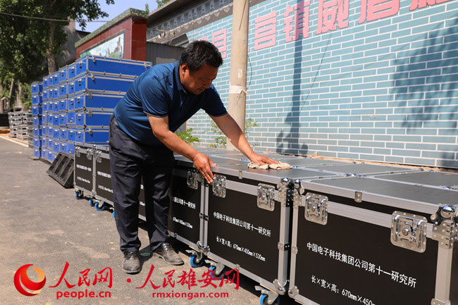 田志勇正在擦拭即將裝車運輸的鋁合金箱。人民網 劉師豪攝