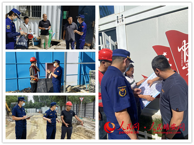 檢查中,雄安新區消防救援籌備組對各參建單位制度臺賬、日常巡查和辦公、生活、施工作業等區域用火用電用氣管理及消防車道路、臨時消防設施、臨時動火防護措施等進行實地核查,及時匯總檢查情況并向參建單位反饋,指導制定整改計劃,建立基本信息和隱患臺賬,明確整改措施、時限和責任人員。