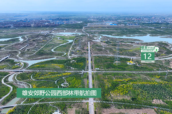 今天是2022年6月12日,星期日,天氣陣雨轉陰,18℃~26℃。在封面和大家見面的是雄安郊野公園西部林帶航拍圖。