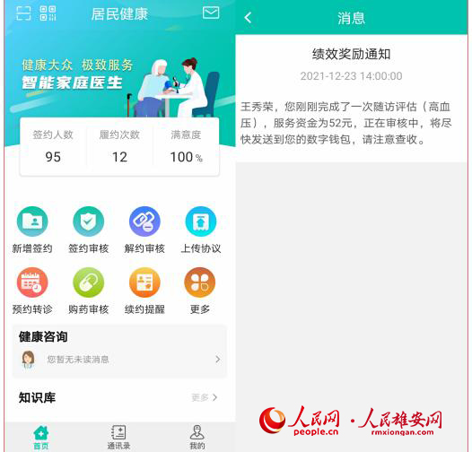 村醫收到績效補助的個人電子錢包界面。雄安新區公共服務局供圖