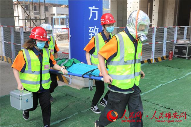 人民網雄安6月23日電 (李雪晴)“7地塊7號樓2層北側發生火災事故,有人員被困,情況緊急!請各應急救援小組立刻趕赴現場展開救援……”23日上午,一場消防應急演練在雄安新區啟動區啟園項目二標段展開。