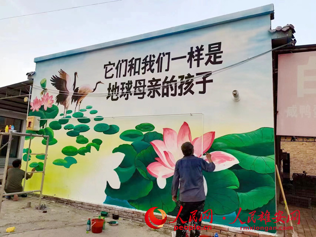 安新縣郭里口村繪制的愛鳥護鳥專題文化墻。安新縣自然資源局供圖