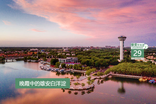 今天是2022年6月29日,星期三,雷陣雨轉小雨,21℃~29℃。在封面和大家見面的是晚霞中的雄安白洋淀。