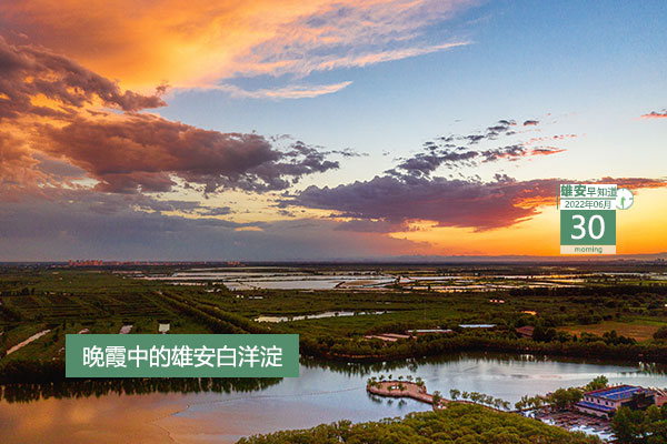 今天是2022年6月30日,星期四,天氣雷陣雨轉陰,21℃~29℃。在封面和大家見面的是晚霞中的雄安白洋淀。