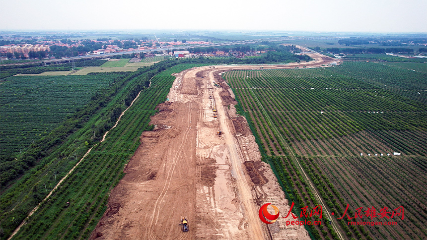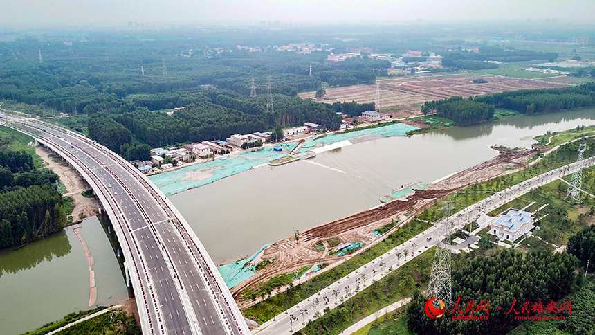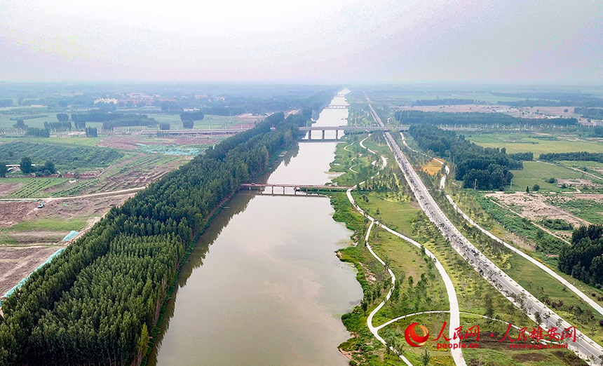 圖為白溝引河與EA1路交匯。白溝引河右堤是雄安新區環起步區最東側堤防。人民網?宋燁文攝