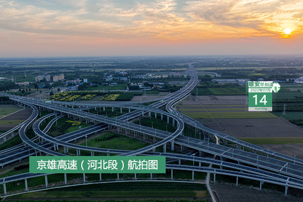 今天是2022年7月14日,星期四,天氣晴?,23℃~34℃。在封面和大家見面的是京雄高速(河北段)航拍圖。