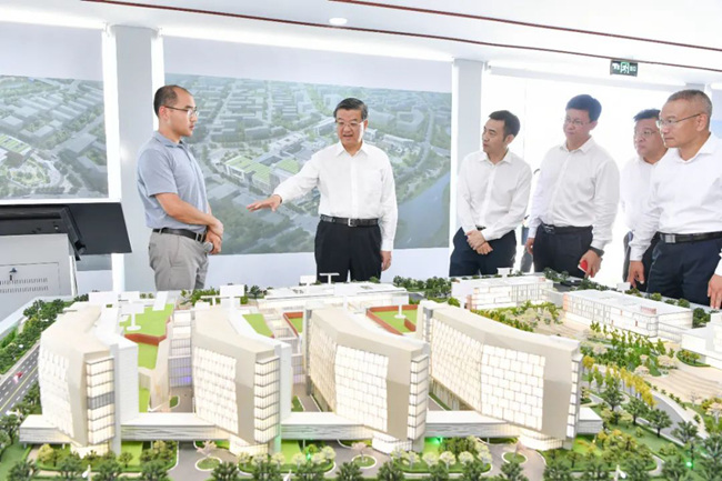 7月13日至14日,省委書記倪岳峰在雄安新區調研。這是倪岳峰在雄安創新研究院項目現場察看建設進展情況。河北日報記者趙海江攝