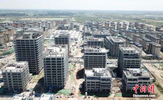 7月20日,中新社記者探訪由中建八局承建的雄安新區首批商業化綜合開發項目之一容東片區2號地51宗地項目。雄安·金湖未來城、雄安新區啟動區中交啟園等首批商業化綜合開發項目陸續開工建設。其中,容東片區2號地51宗地項目包含15棟辦公樓、39棟住宅、23棟優品住宅,地上面積50.24萬平方米,地下面積20萬平方米,總建筑面積為70.24萬平方米。該項目辦公區域將重點對接疏解央企,將打造宜居宜業的綜合性功能區。目前該項目外幕墻施工全面展開,住宅全部進入精裝修階段。圖為航拍容東片區2號地51宗地項目建設現場。中新社記者 韓冰 攝