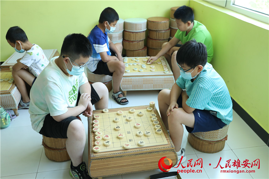 容城縣青少年活動中心內,孩子們在上象棋課。人民網 王紅攝