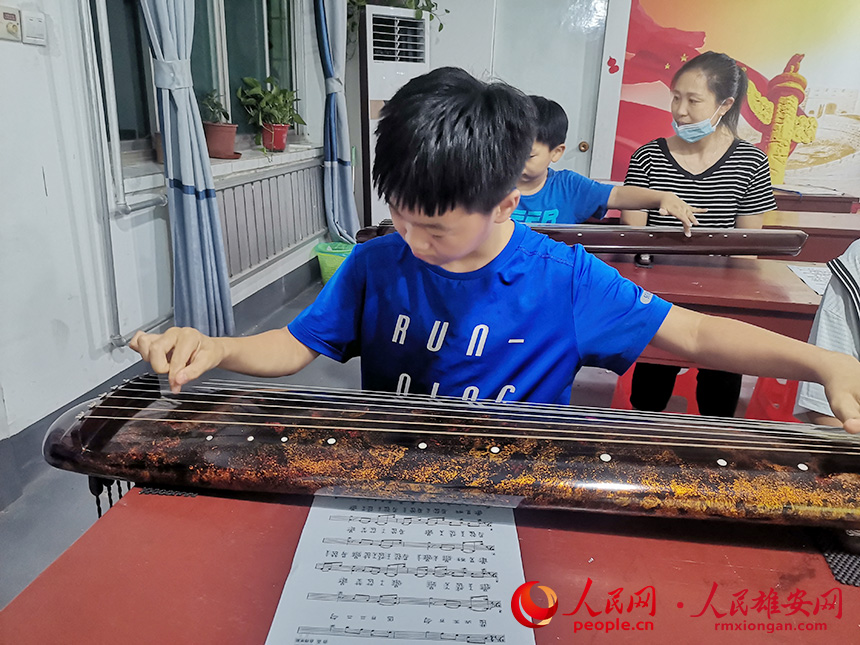 家長帶著孩子學習古琴。雄縣宣傳部供圖