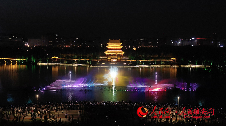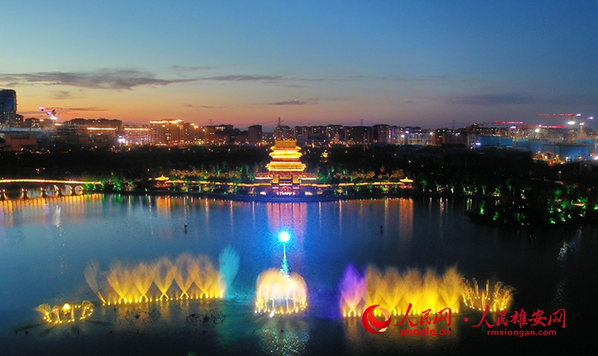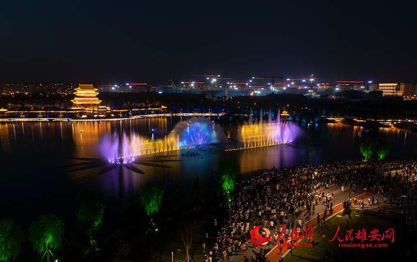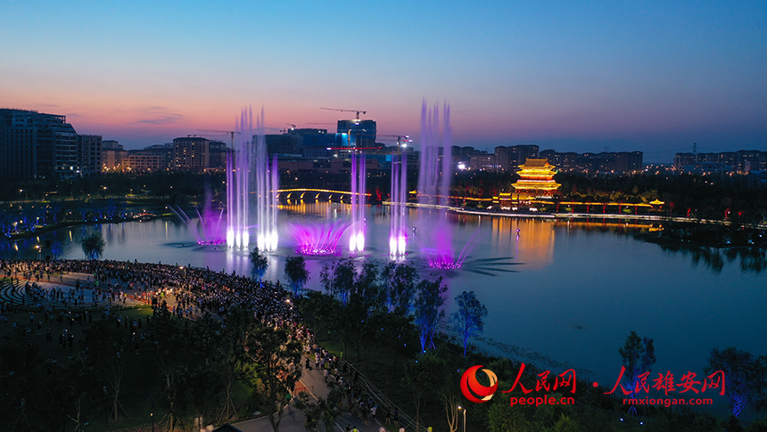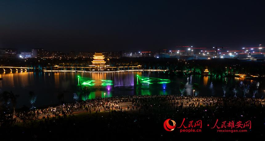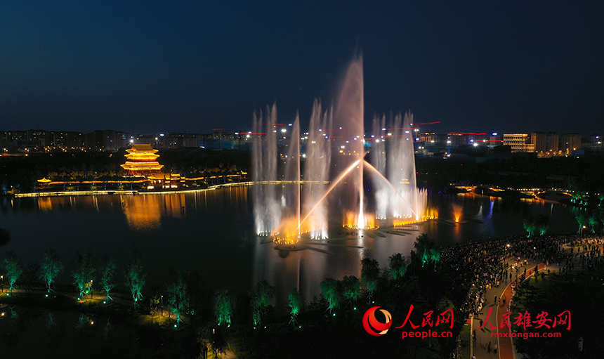 雄安金湖公園音樂噴泉秀現場圖。人民網?李兆民攝