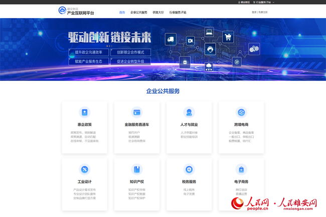 雄安新區產業互聯網平臺界面。資料圖