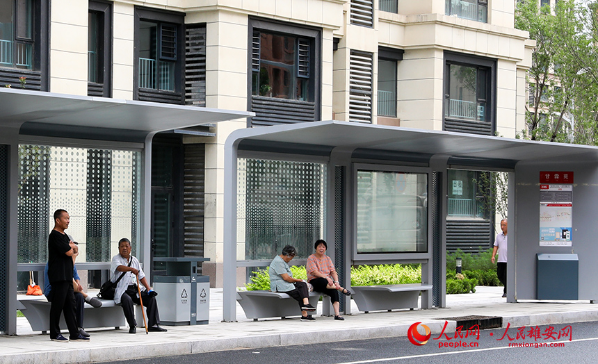 目前容東片區已開通多趟公交線路,票價為每人每次1元,使用雄安新區交通一卡通刷卡可享8折優惠,學生卡可享5折優惠,敬老卡免費。公共交通聯通了容東片區至雄安郊野公園、白洋淀站、雄安市民服務中心、容城縣等地,讓居民出行更便捷。圖為正在等公交車的乘客。人民網?宋燁文攝